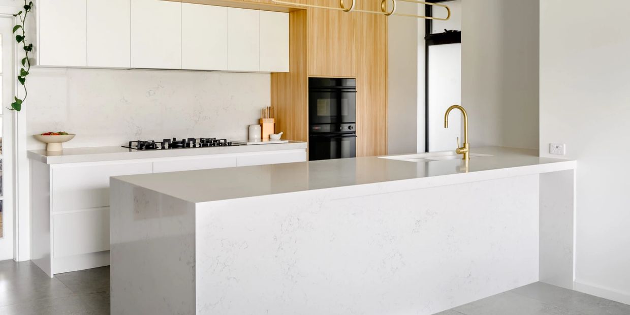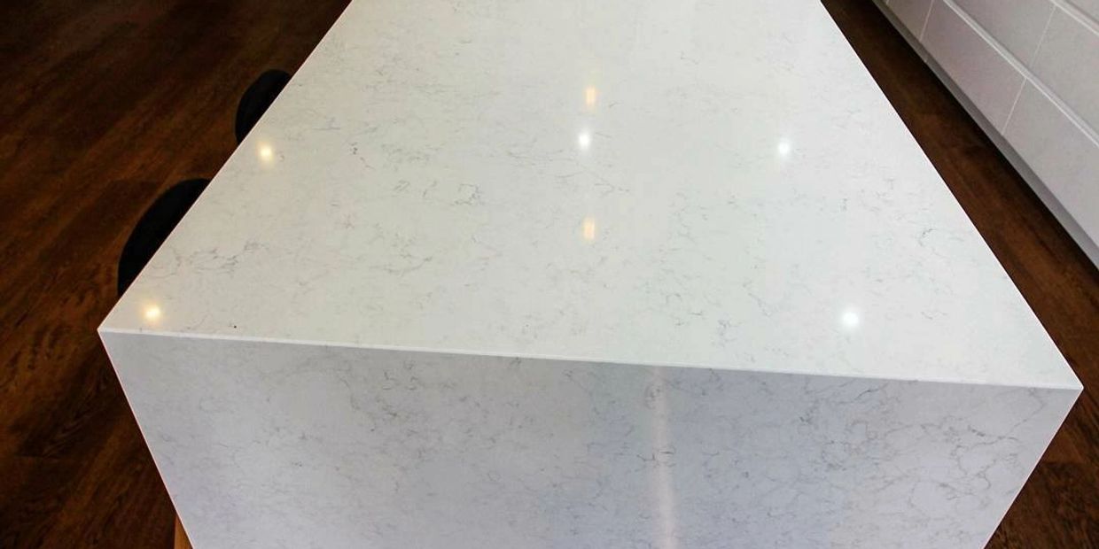 Carrara Falls dramatically merges solid white quartz stone with rich grey veins. The organic vein feature will enrich your interior with an exclusive, luxurious feel.